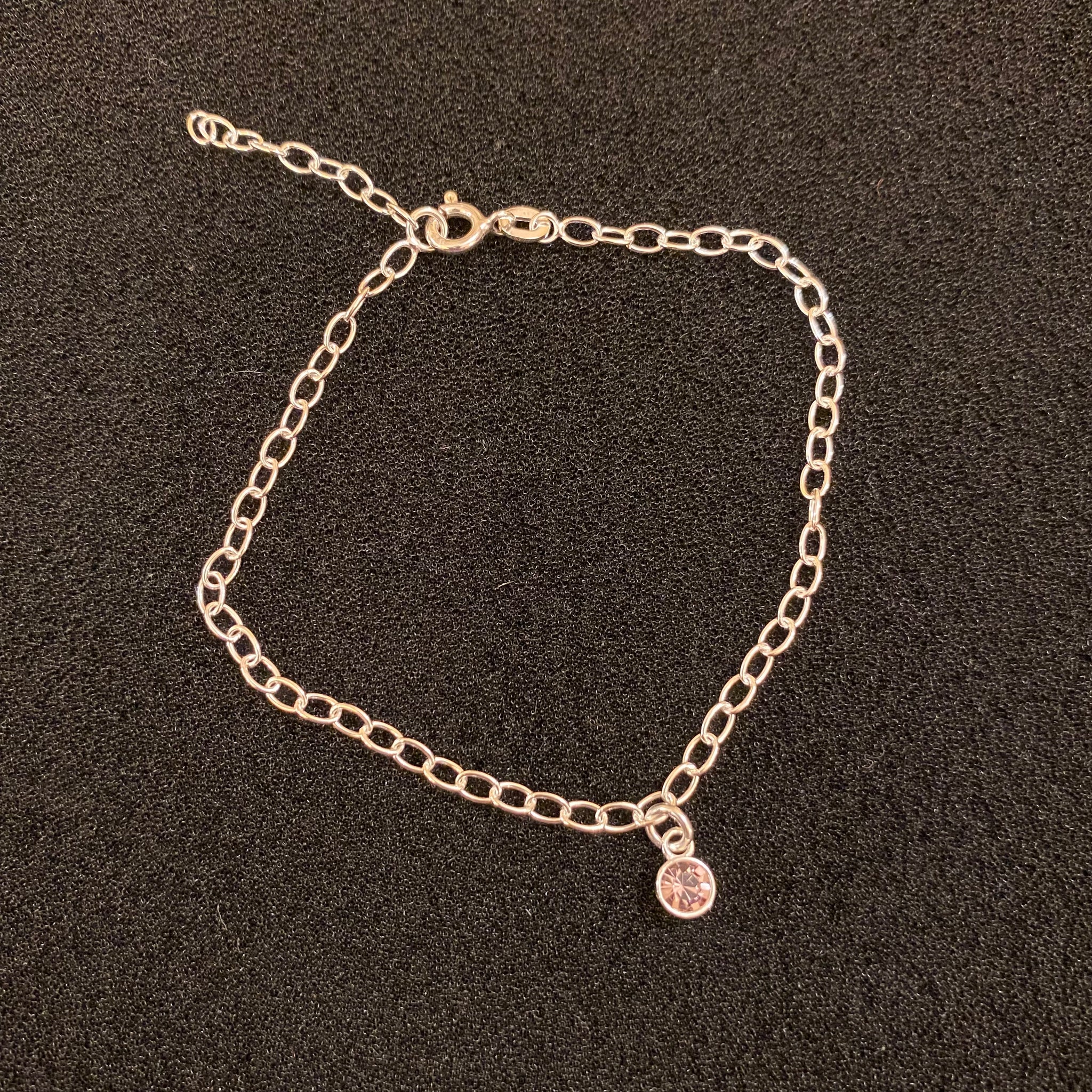 Sterling silver cable chain bracelet with Swarovski crystal birthstone charm