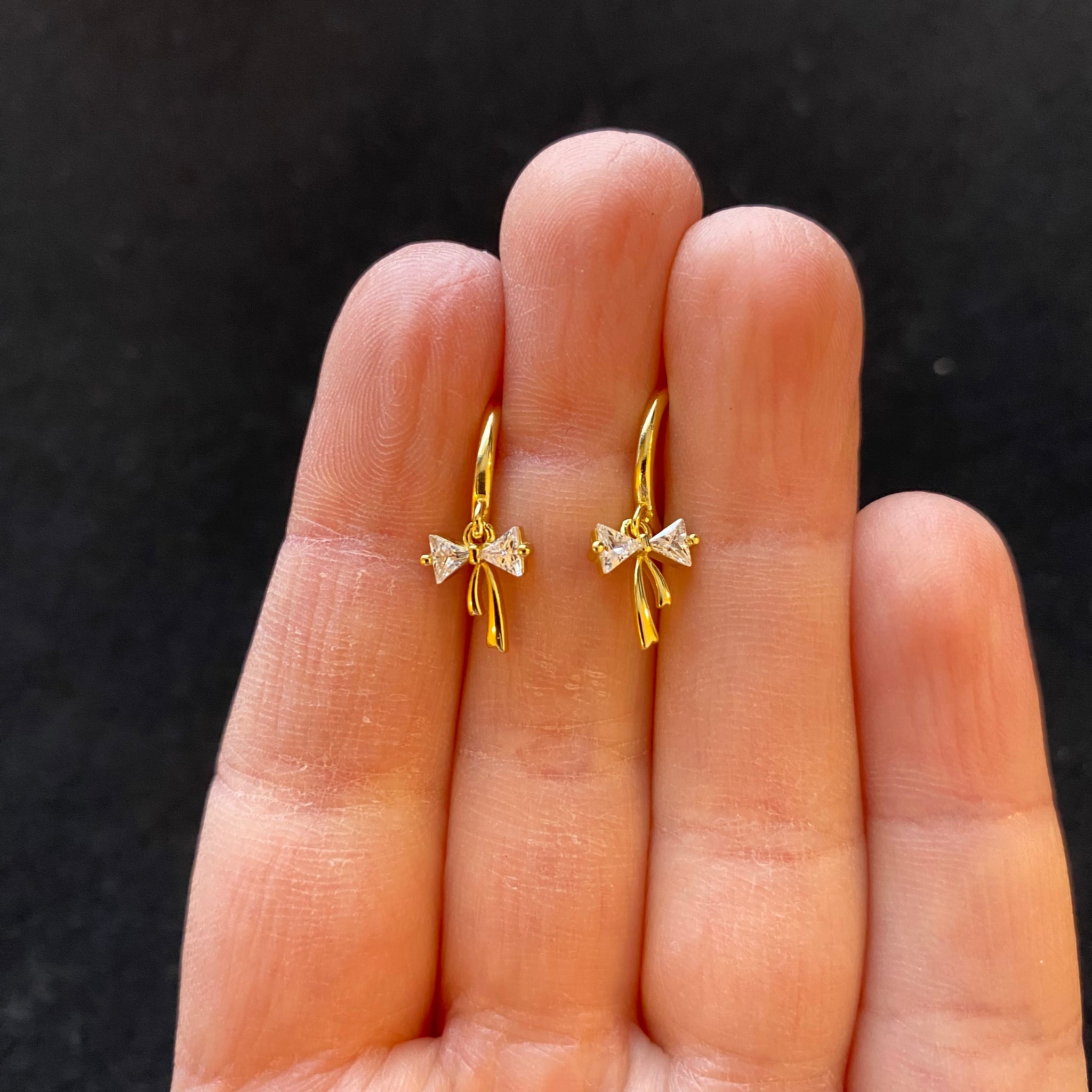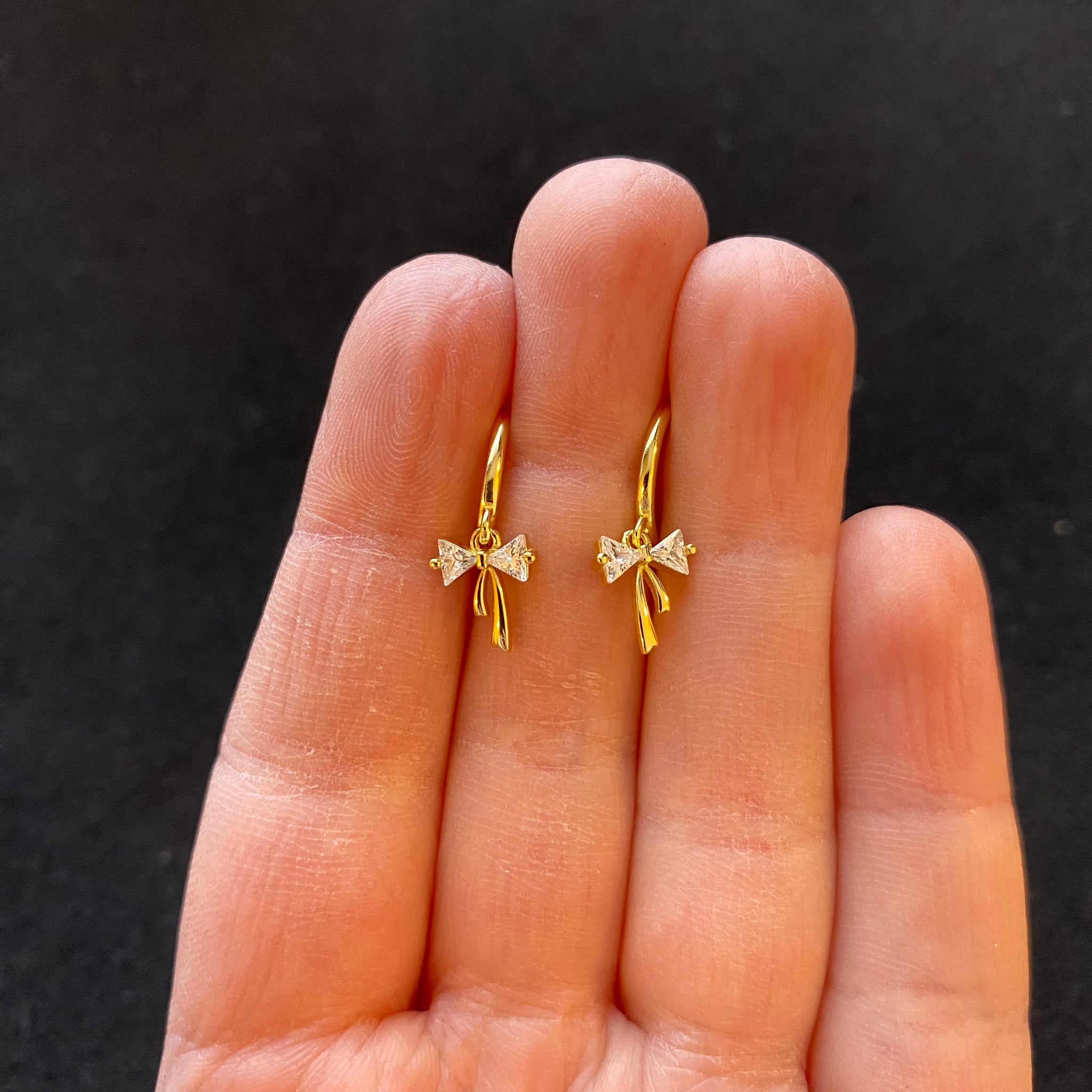 Stunning 18K gold plated sterling silver bow huggie hoop earringsInner diameter of hoop is 8.5mm