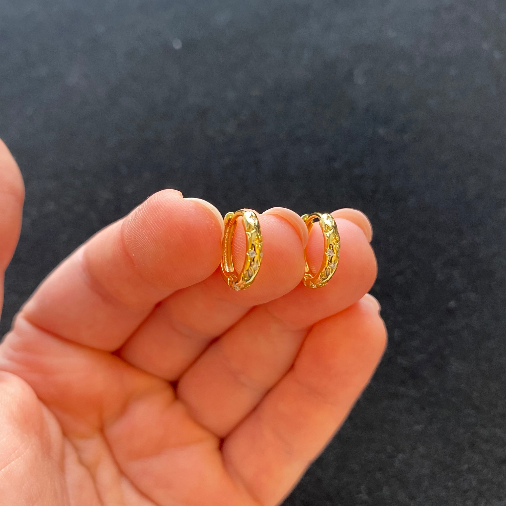 Stunning 18K gold plated sterling silver starburst Huggie hoop earrings