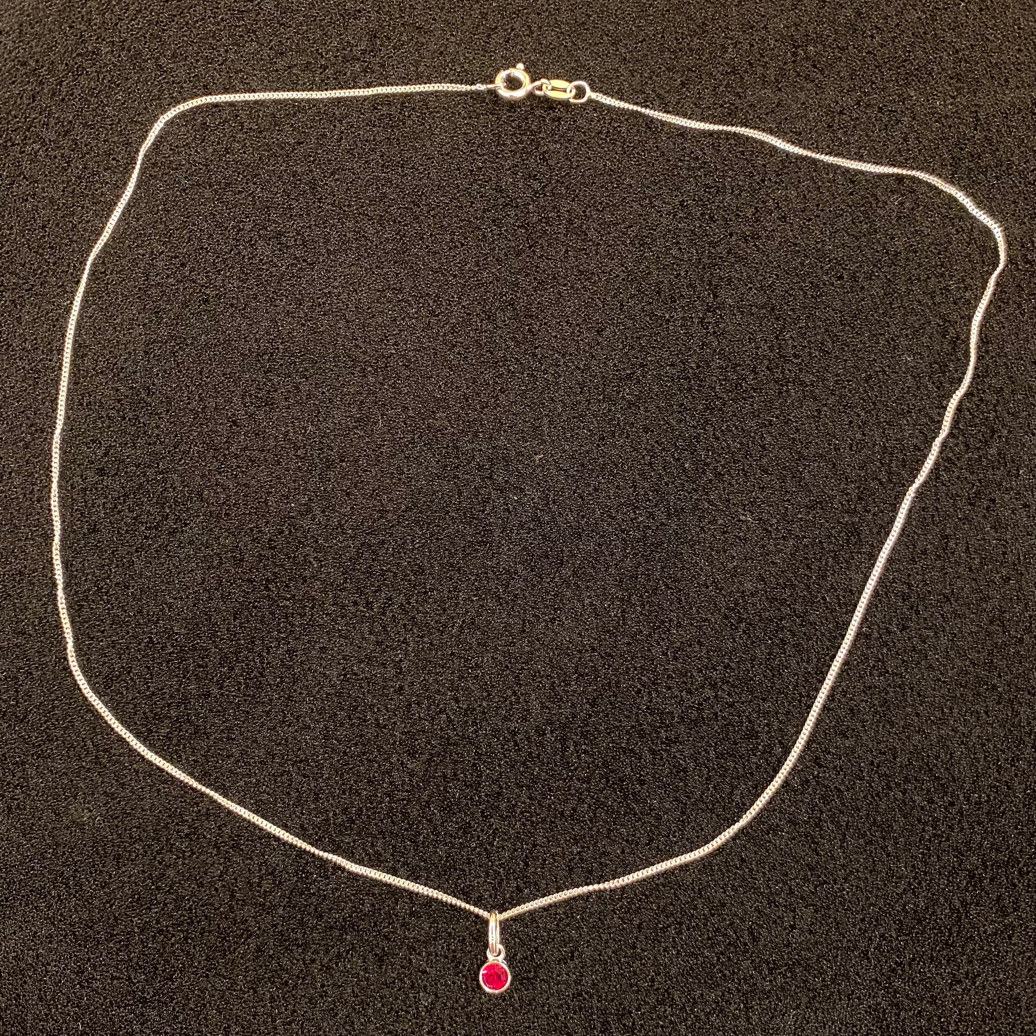 Sterling silver chain necklace with Swarovski crystal garnet charm (January birthstone)