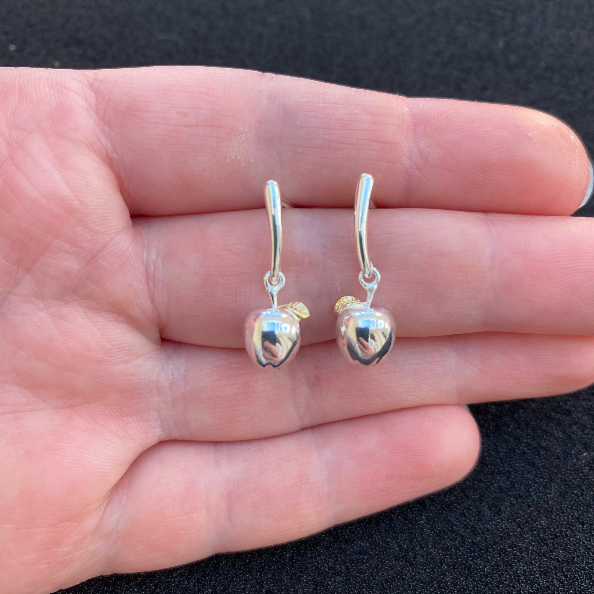 Sterling silver apple stud earrings with 18ct yellow gold plating for the apple leaf